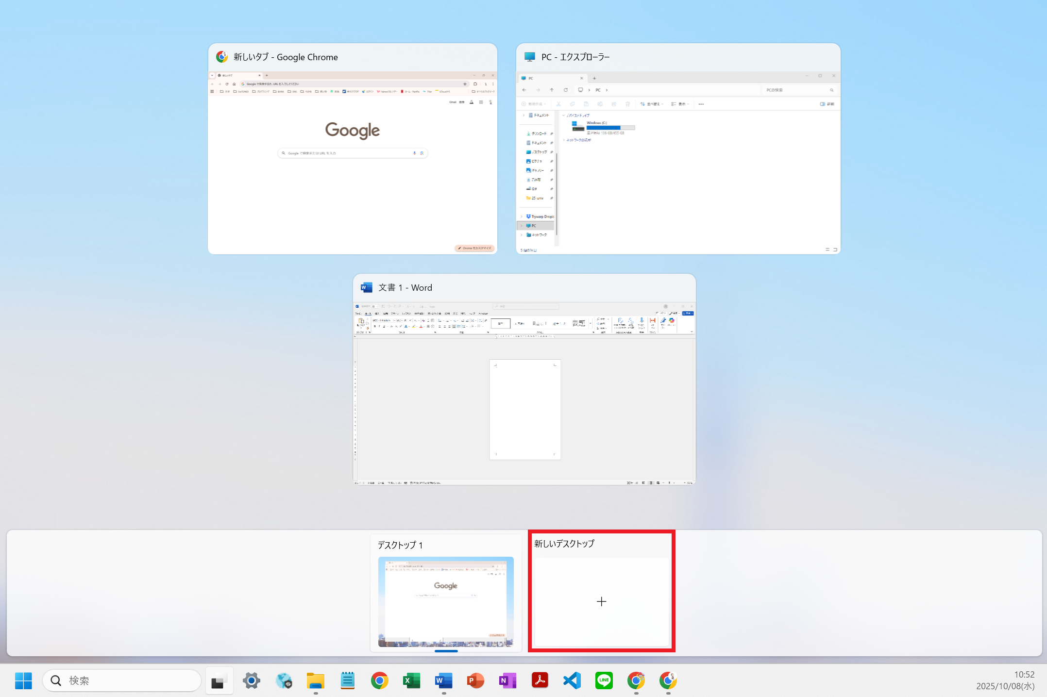 「新しいデスクトップ」をクリックしてデスクトップを追加しよう!