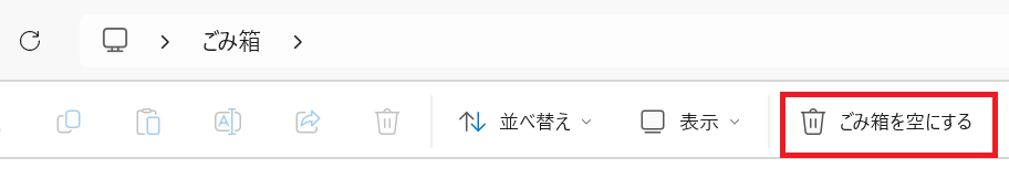 「エクスプローラー」の「ゴミ箱」から「ごみ箱を空にする」で完全削除もできる!