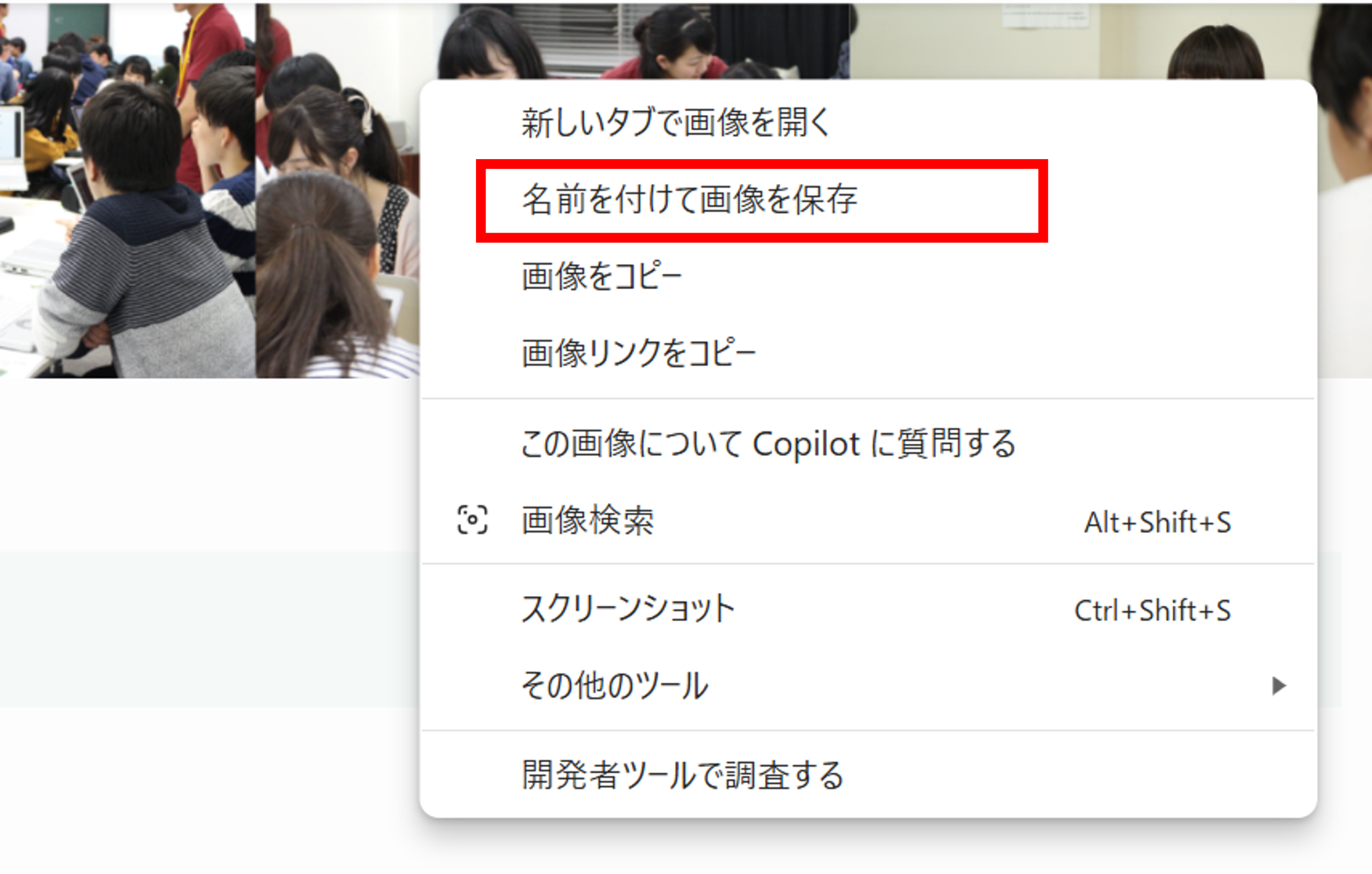 ③画像を右クリックして、「名前をつけて画像を保存」からデスクトップに保存しよう