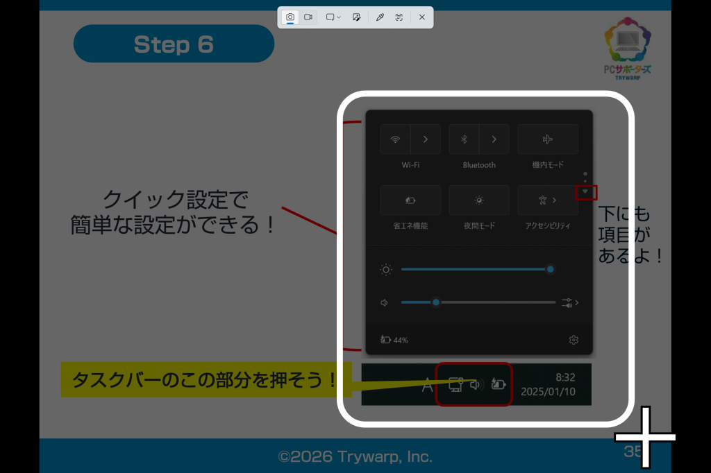 ④Windowsキー、Shiftキーを押しながらSキーを押して、十字が出たのを確認したら画面をドラッグしてみよう