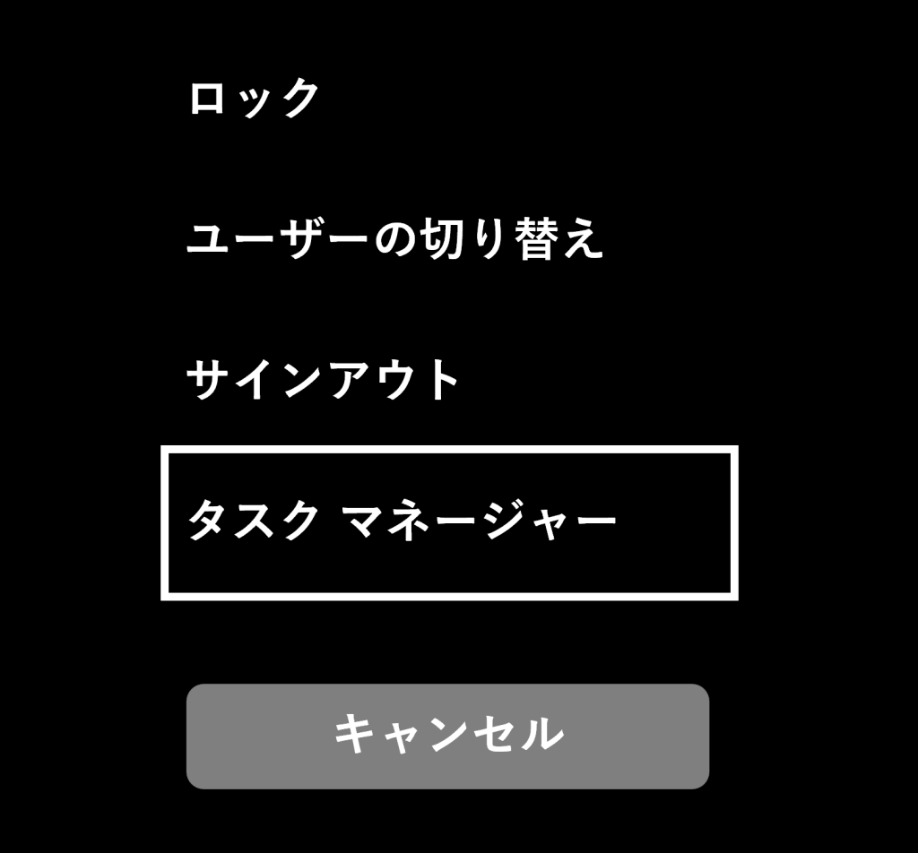 黒い画面が表示されたら「タスクマネージャー」をクリックしよう