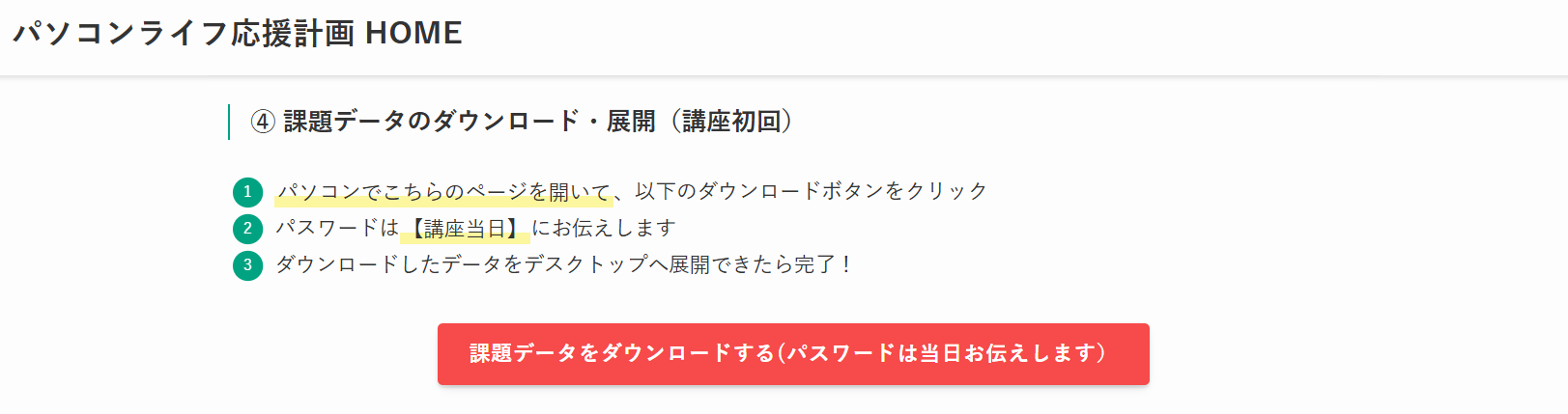 ②「課題データをダウンロードする」を見つけてクリックしよう