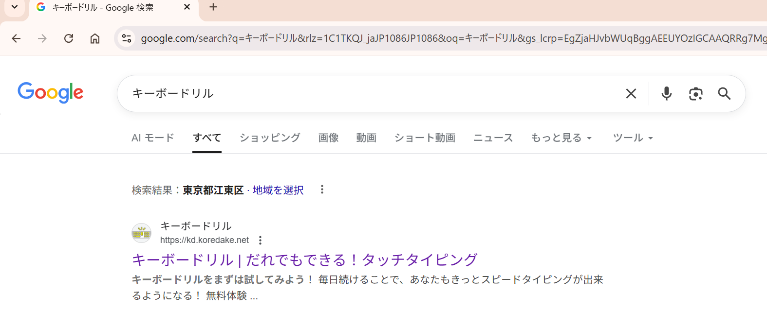 ① ブラウザで「キーボードリル」と検索し、検索結果一番上のリンクを開こう!